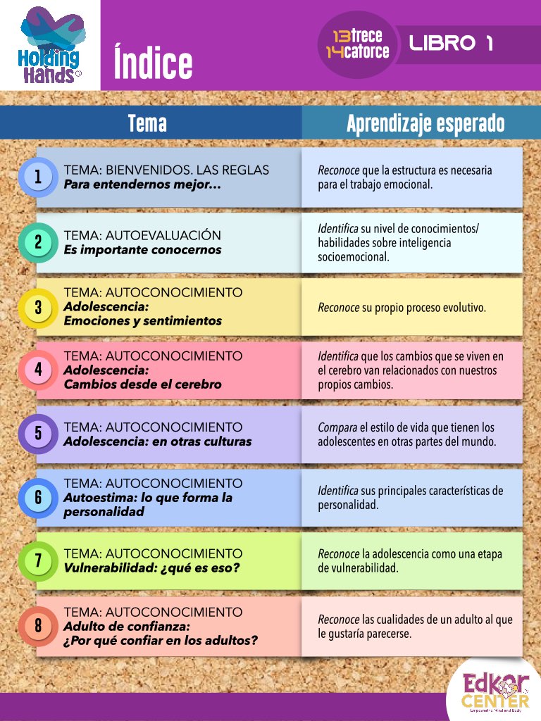 En esta etapa, los adolescentes inician un viaje de autoconocimiento. Identifican los cambios que viven en su cuerpo, mente y emociones, desarrollan habilidades básicas como la regulación emocional y la comunicación asertiva, y comprenden el valor de los vínculos sanos. Descubren que sus acciones pueden hacer una diferencia en su entorno.